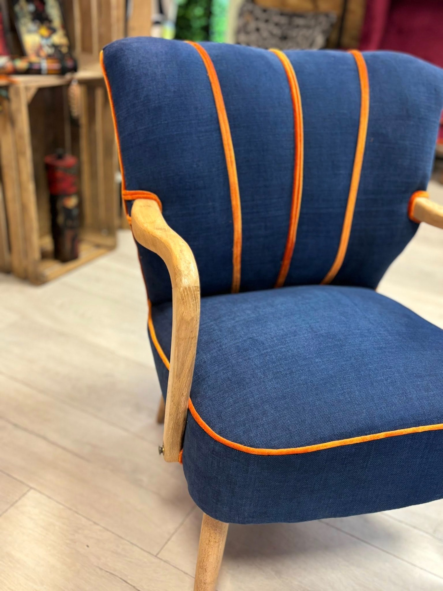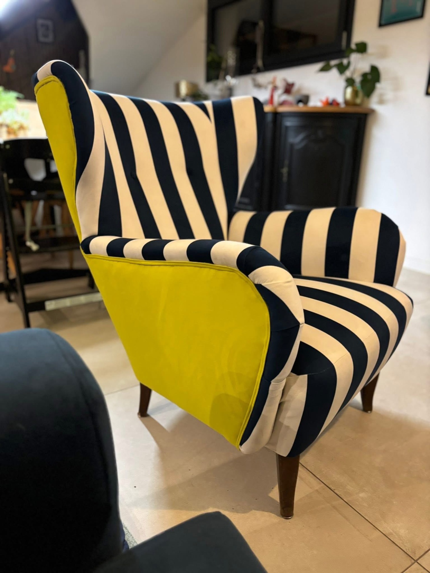 À la base, Madame Orange était commerciale dans le sanitaire. Oui, oui… les salles de bain. Et puis, comme elle est du genre touche-à-tout (et surtout touche-à-bien 😉), elle a commencé à relooker des fauteuils pour les amis, la famille… “juste comme ça”.