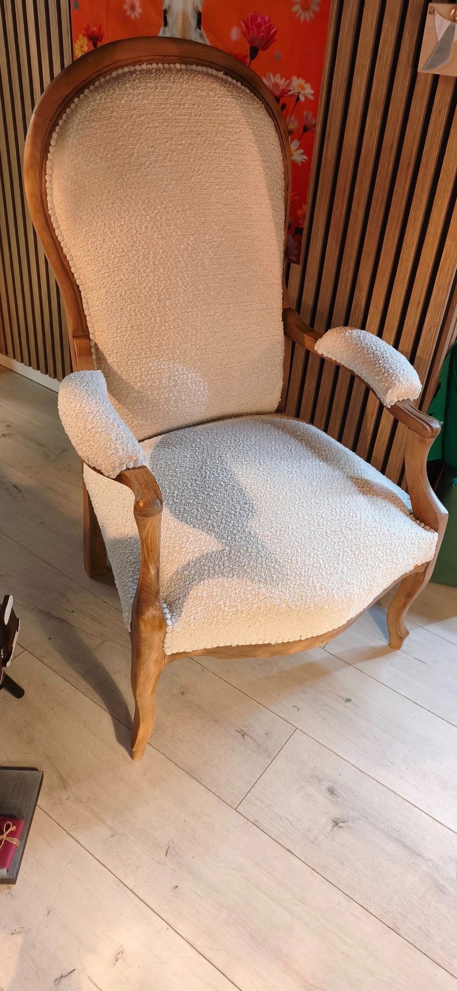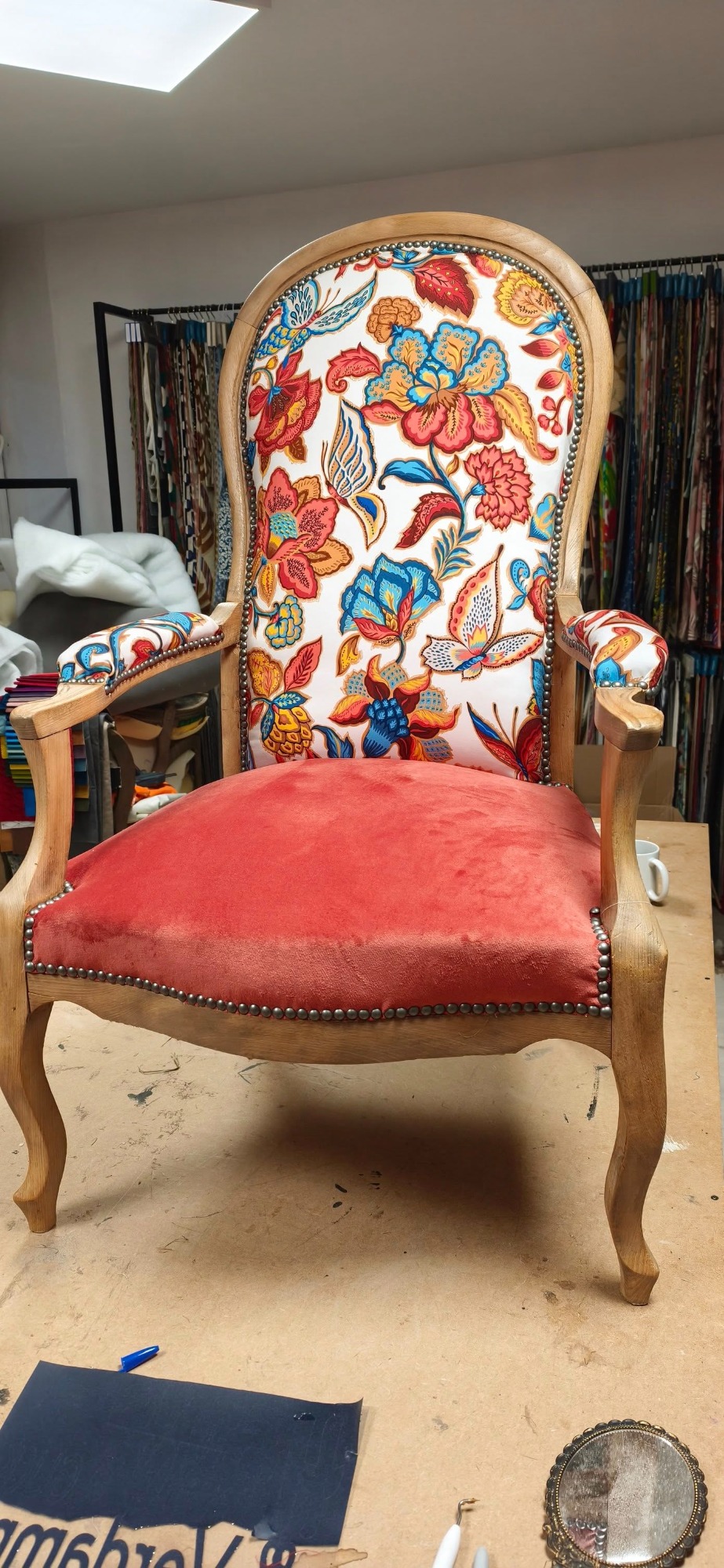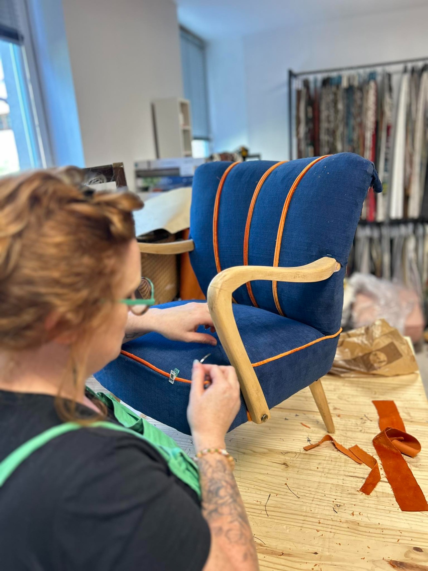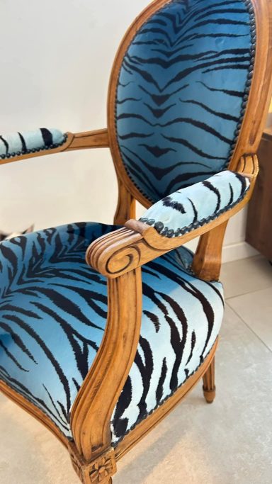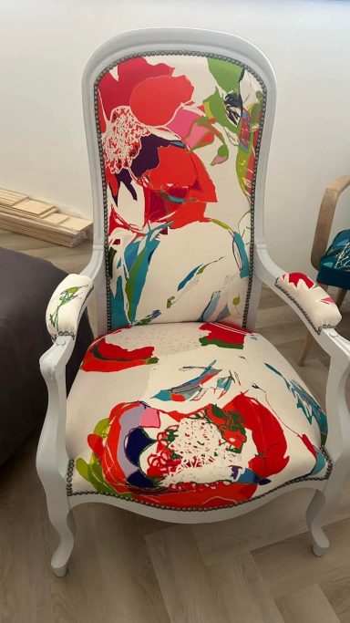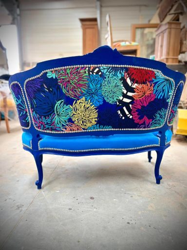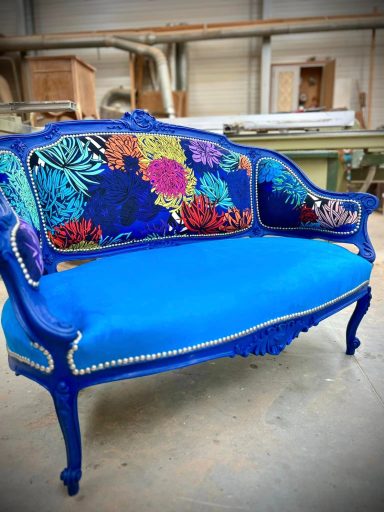Aujourd’hui, après 5 ans d’aventure, ce sont plus de 500 fauteuils, banquettes et canapés qui sont passés entre ses mains expertes. Autant dire que le tissu, les agrafes et les mousses n’ont plus aucun secret pour elle 😄