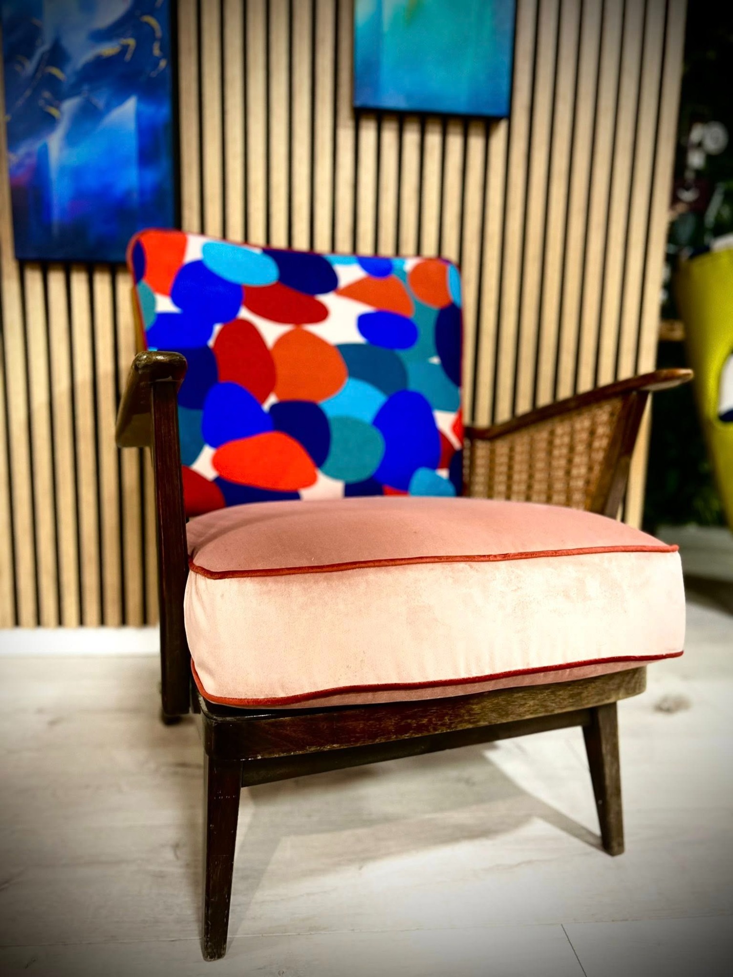 Résultat : des assises pleines de caractère, du confort, de la couleur, et surtout une passion devenue un vrai savoir-faire. Comme quoi, entre un lavabo et un fauteuil, il n’y a parfois qu’un coup de foudre créatif ✨